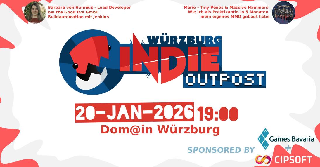 18.01.2026Der Auftakt-Indie-Outpost Würzburg 2026! Das regelmäßige Networking-Event für Indie Game Devs & Interessierte in und um Würzburg!