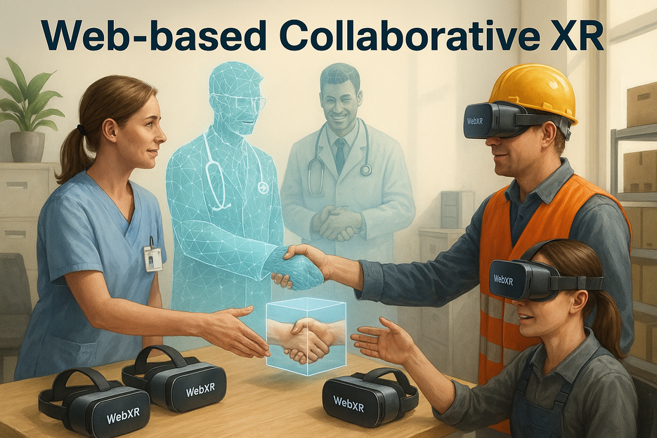 With latencies in local networks in the order of milliseconds, WebXR coupled with WebRTC provide a powerful technological foundation for collaborative environments and as multiplayer games. Additionally, web applications don't require any additional installation on users' devices, while still providing a user experience similar to native applications --- and if need be, it's still possible to develop native application that can interact with web applications.